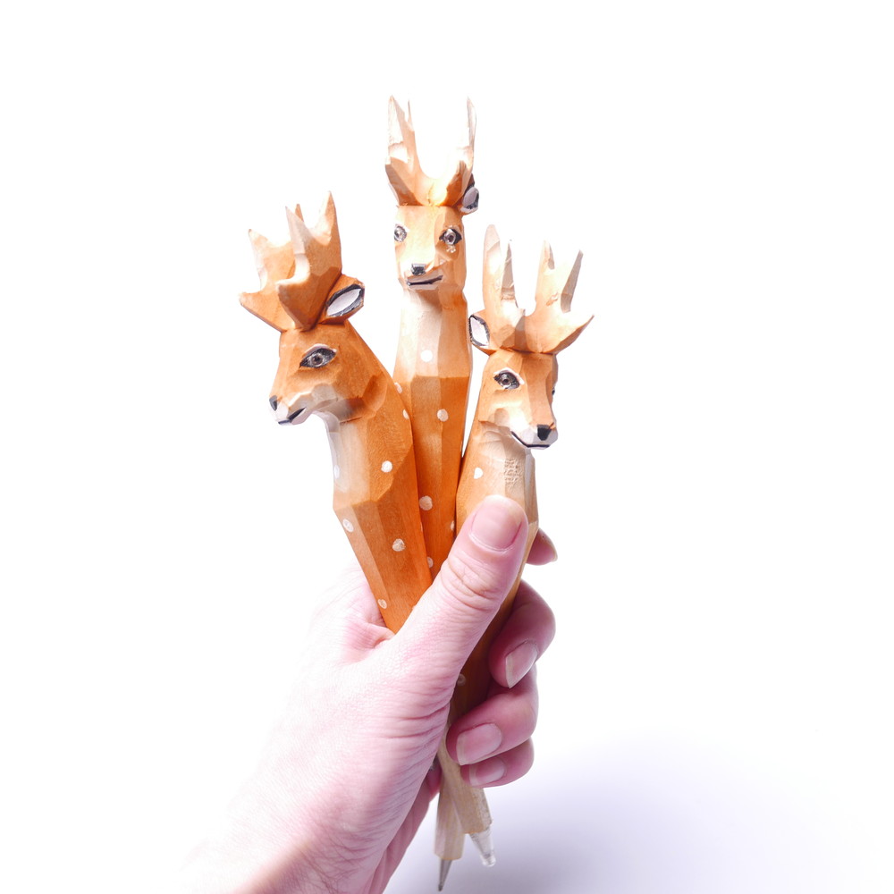 나무를 조각하고 페인팅해서 만든 볼펜입니다.