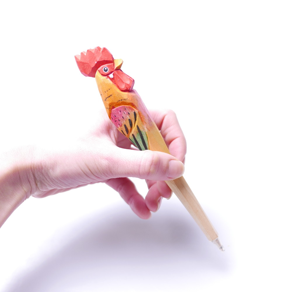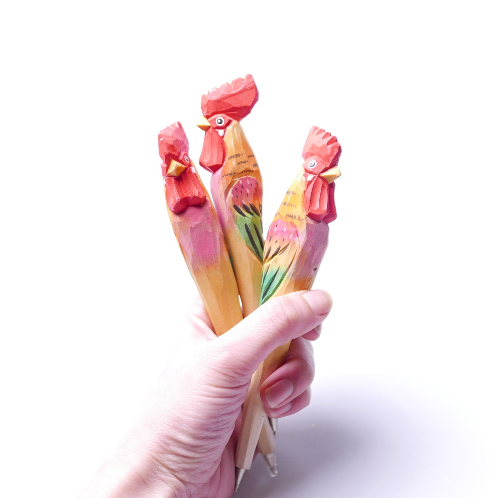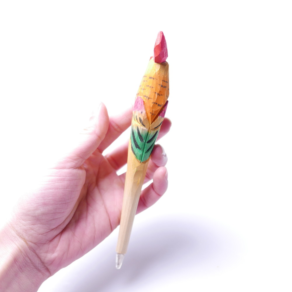 나무를 조각하고 페인팅해서 만든 볼펜입니다.