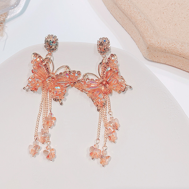 화보석 나비 장식과 아래 비즈 체인장식들로