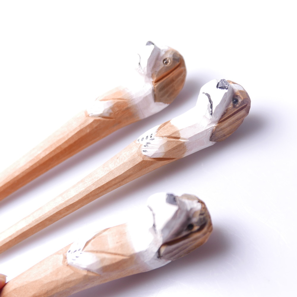 나무를 조각하고 페인팅해서 만든 볼펜입니다.