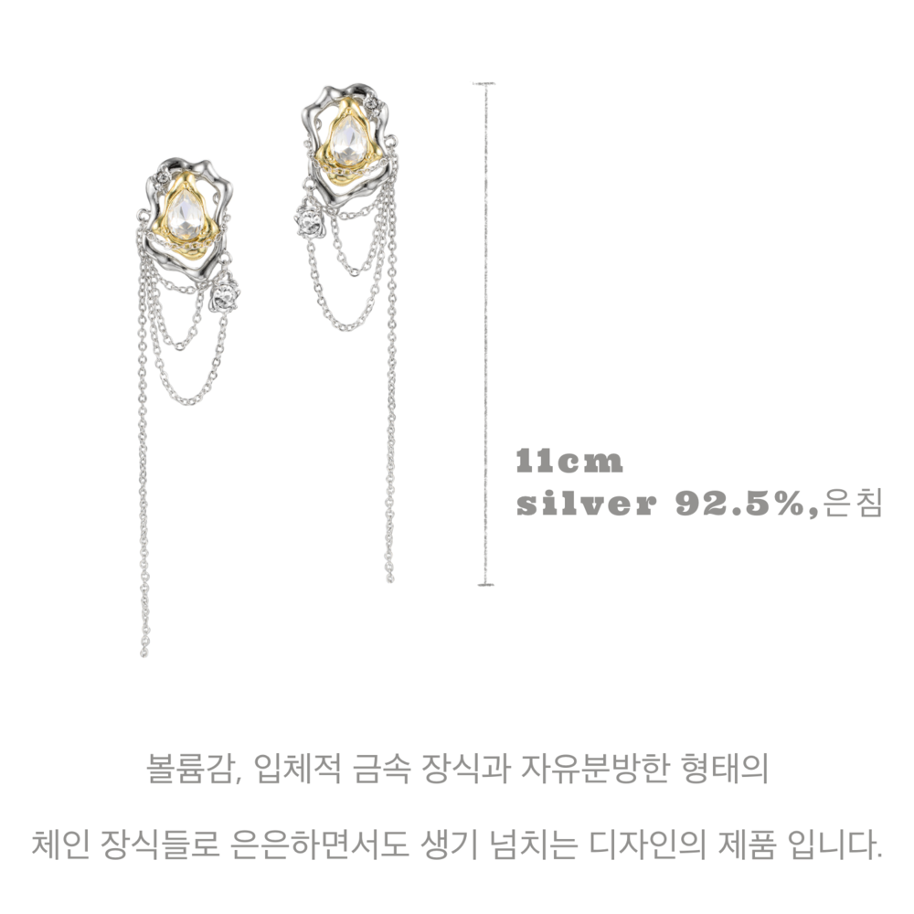 실버&골드 컬러의 볼륨감 넘치는 금속 장식과