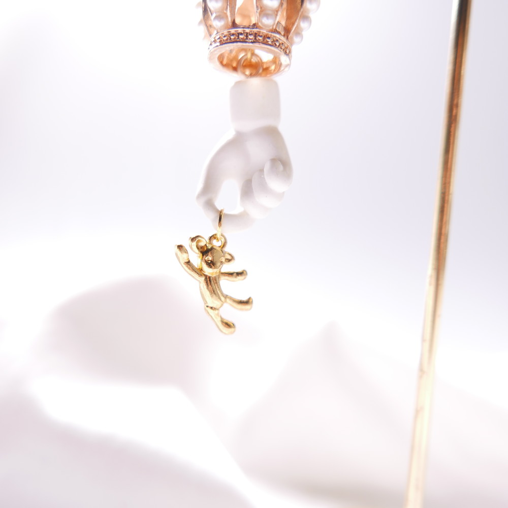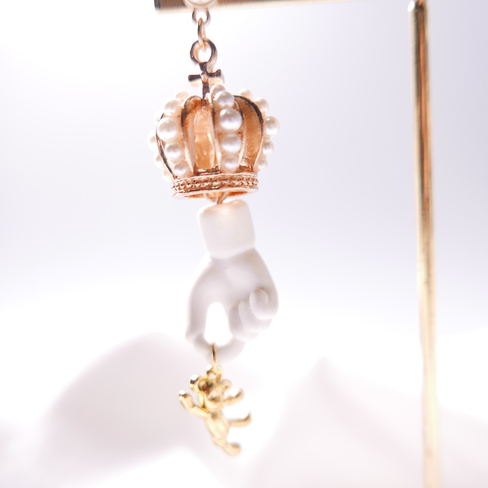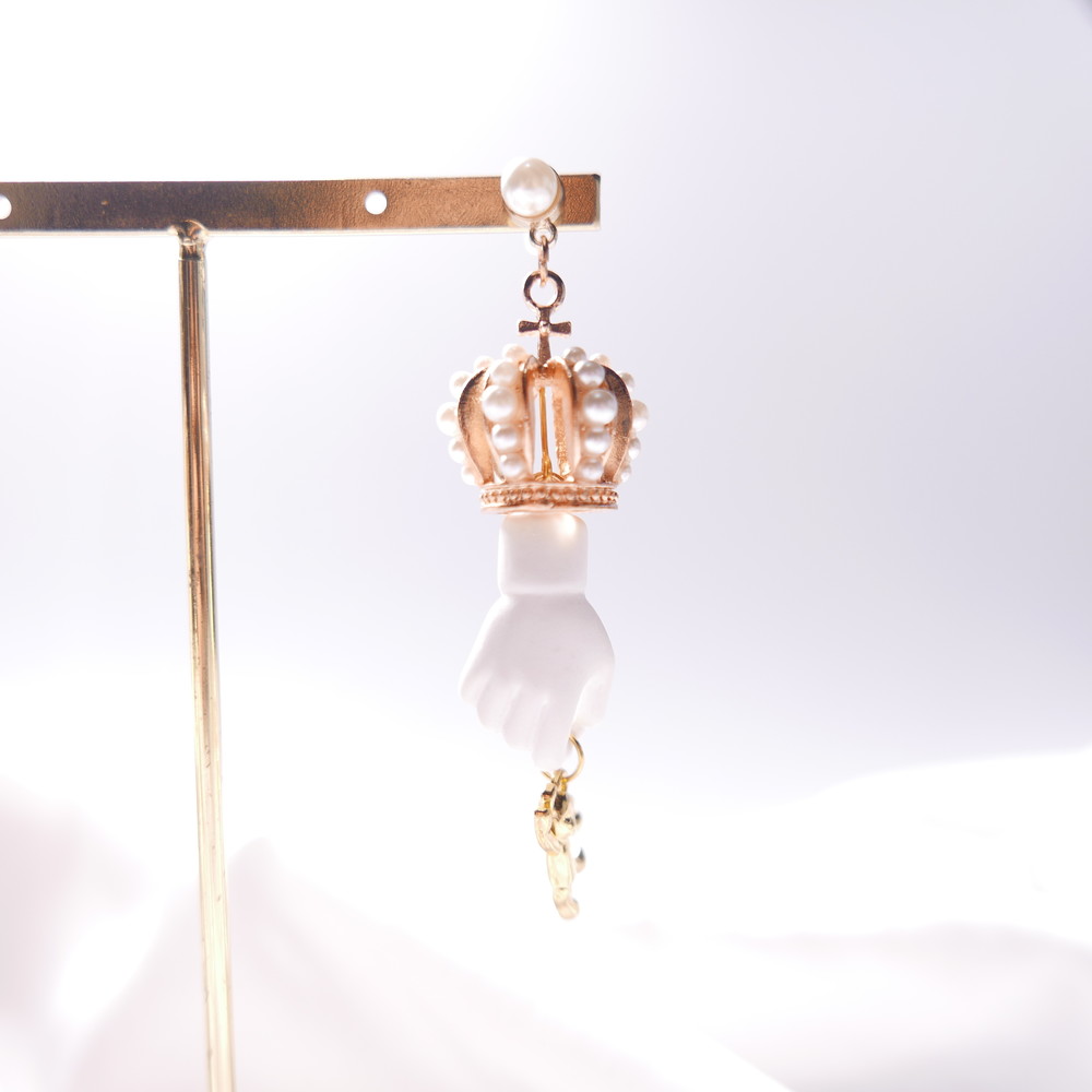 골드바탕의 금속장식,진주,손모양의 오브제