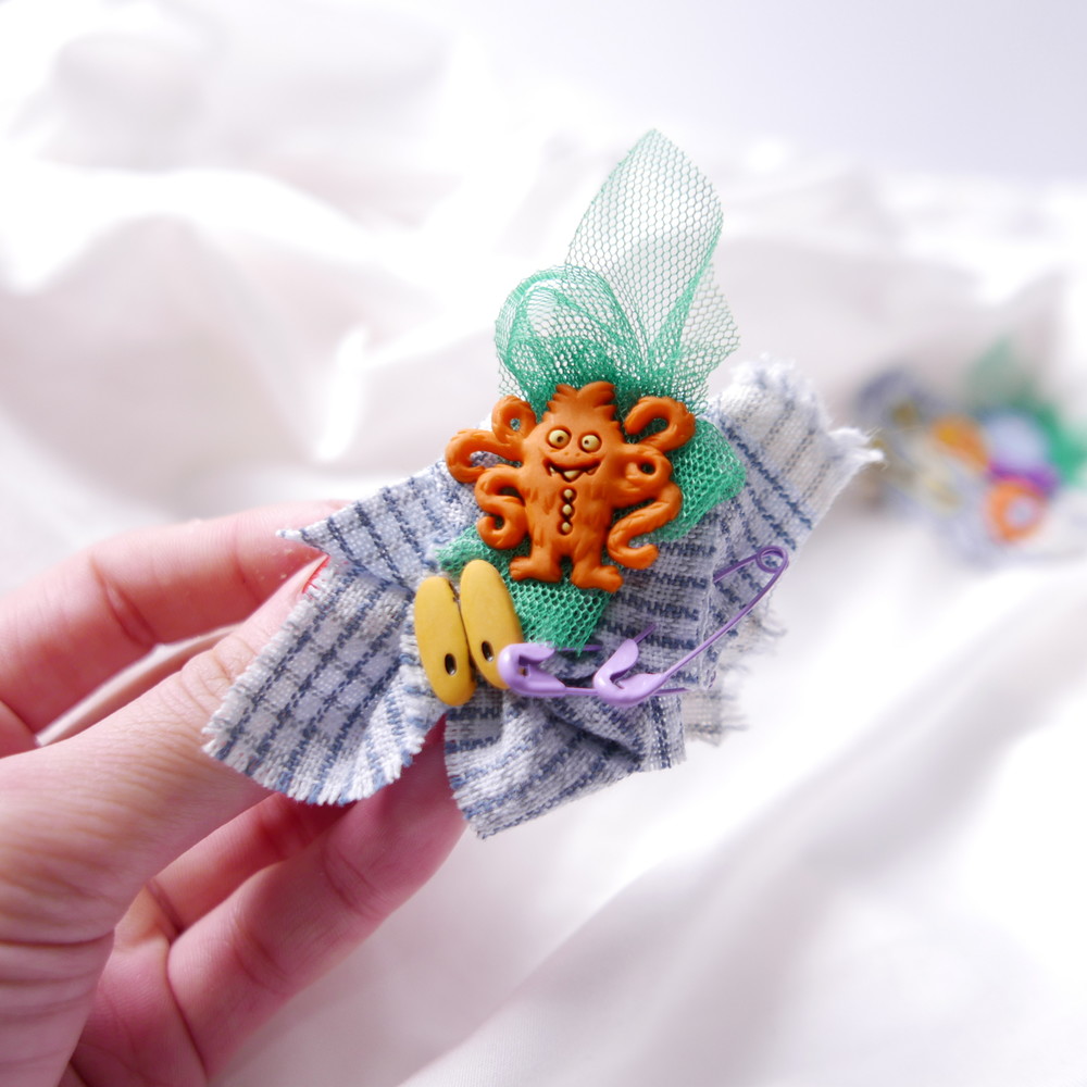 키치하면서도 재미있는 장식의 브로치 겸용 집게핀입니다.