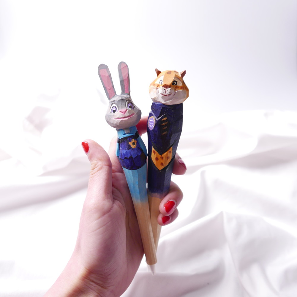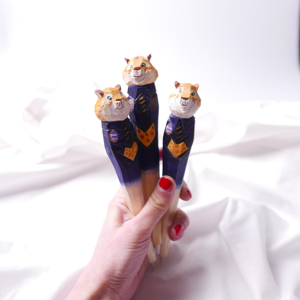 나무를 조각하고 페인팅해서 만든 볼펜입니다.