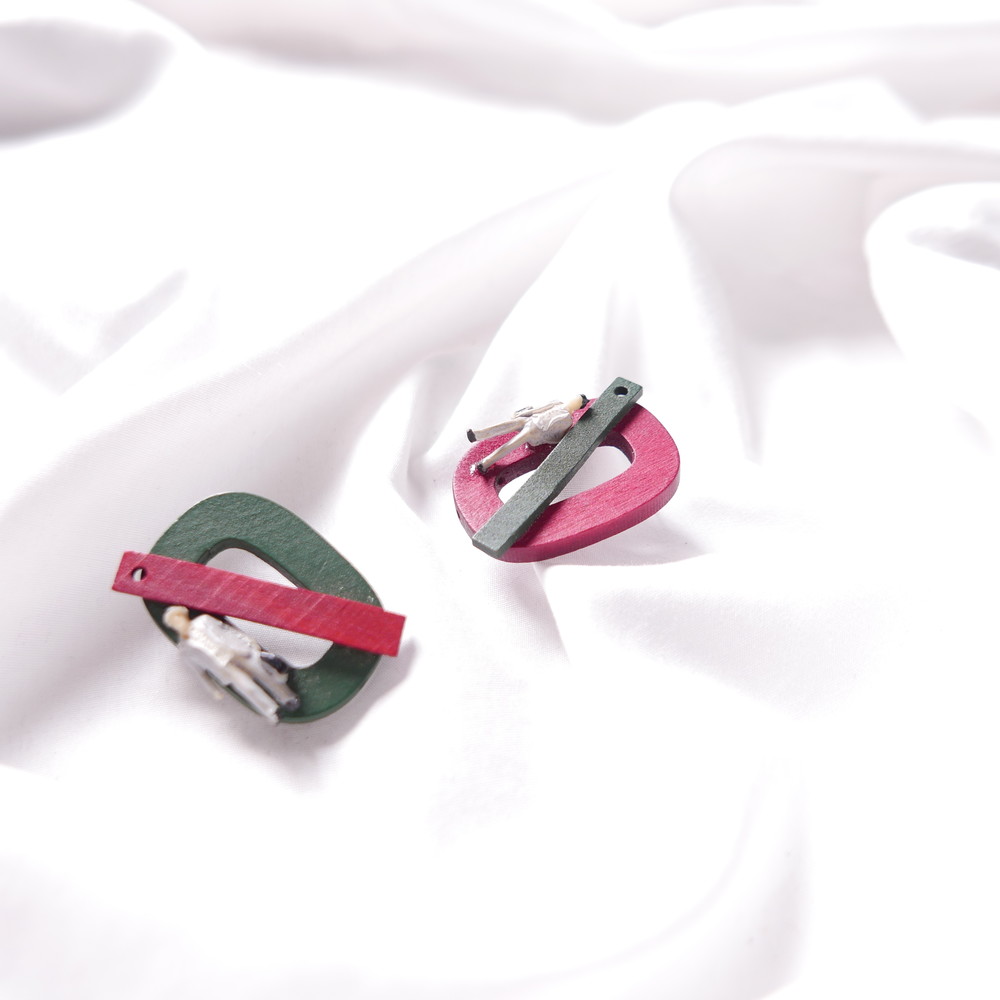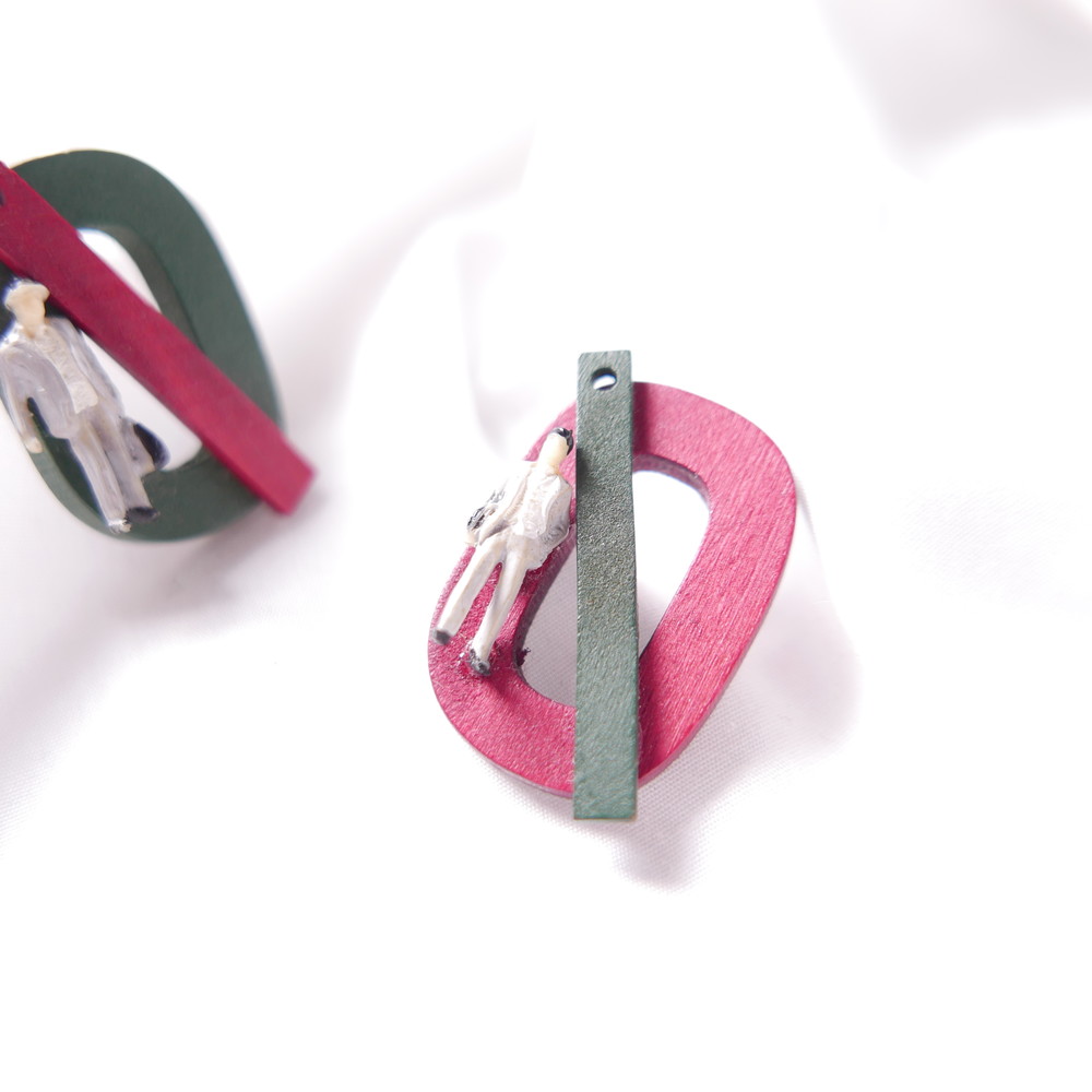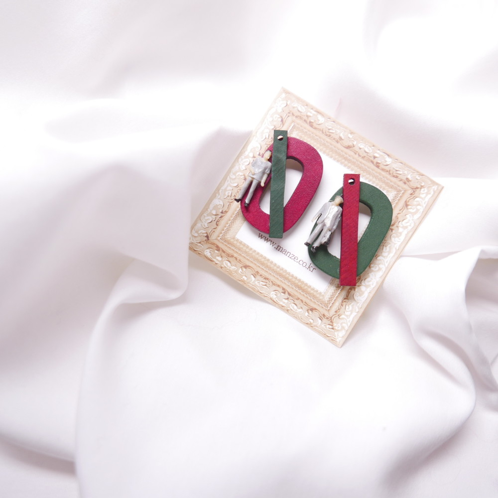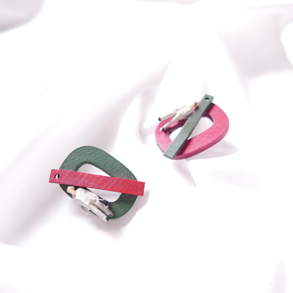 나무 특유의 질감과 색감, 도형, 추상적인 장식으로