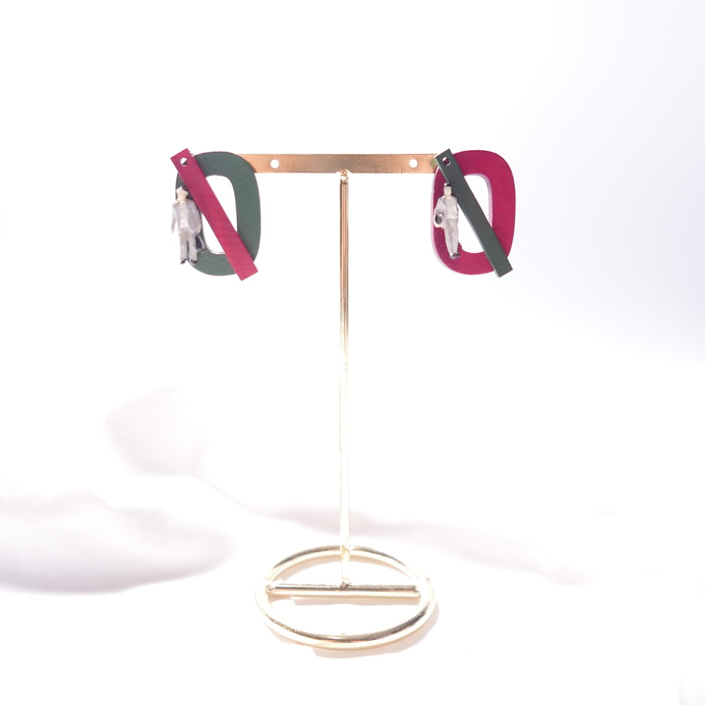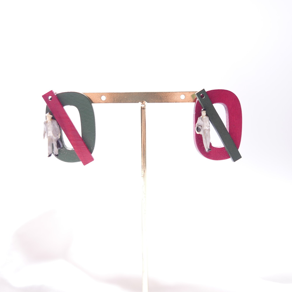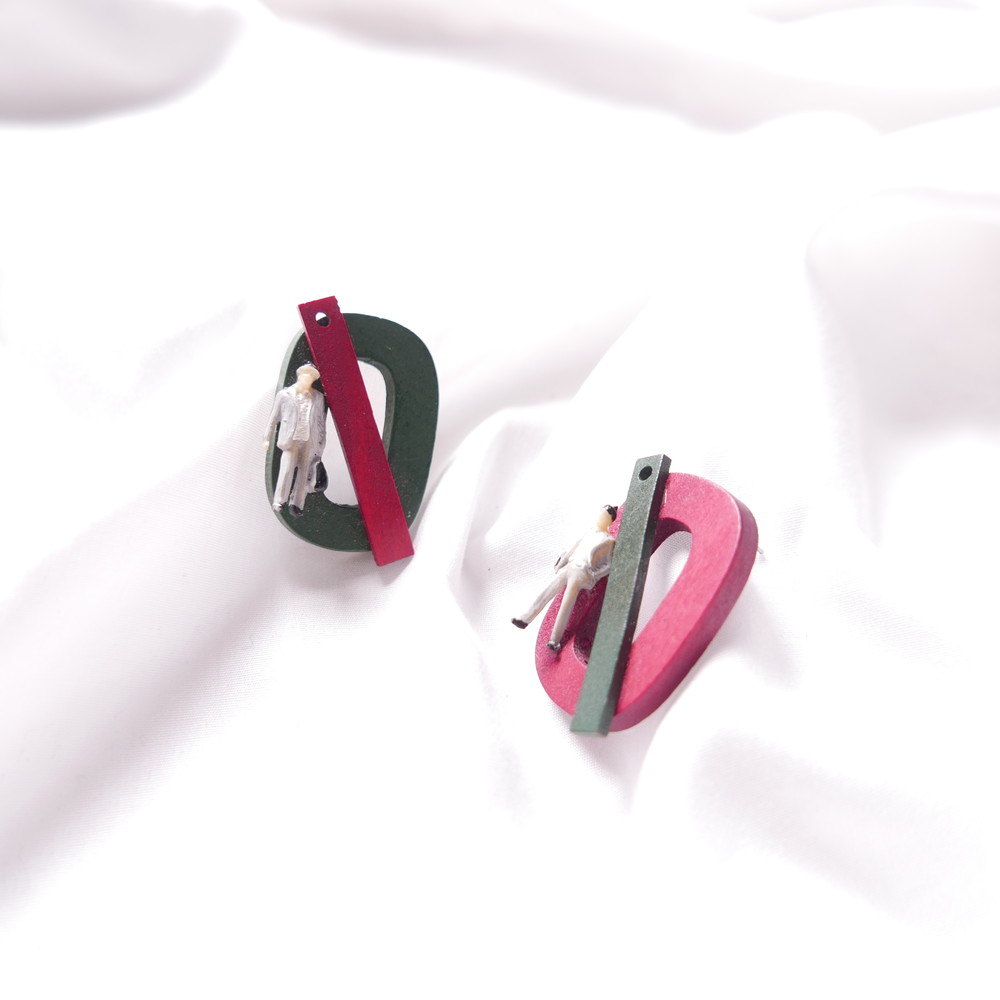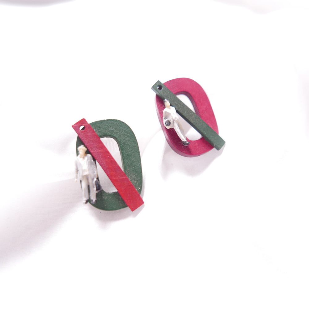 나무 특유의 질감과 색감, 도형, 추상적인 장식으로