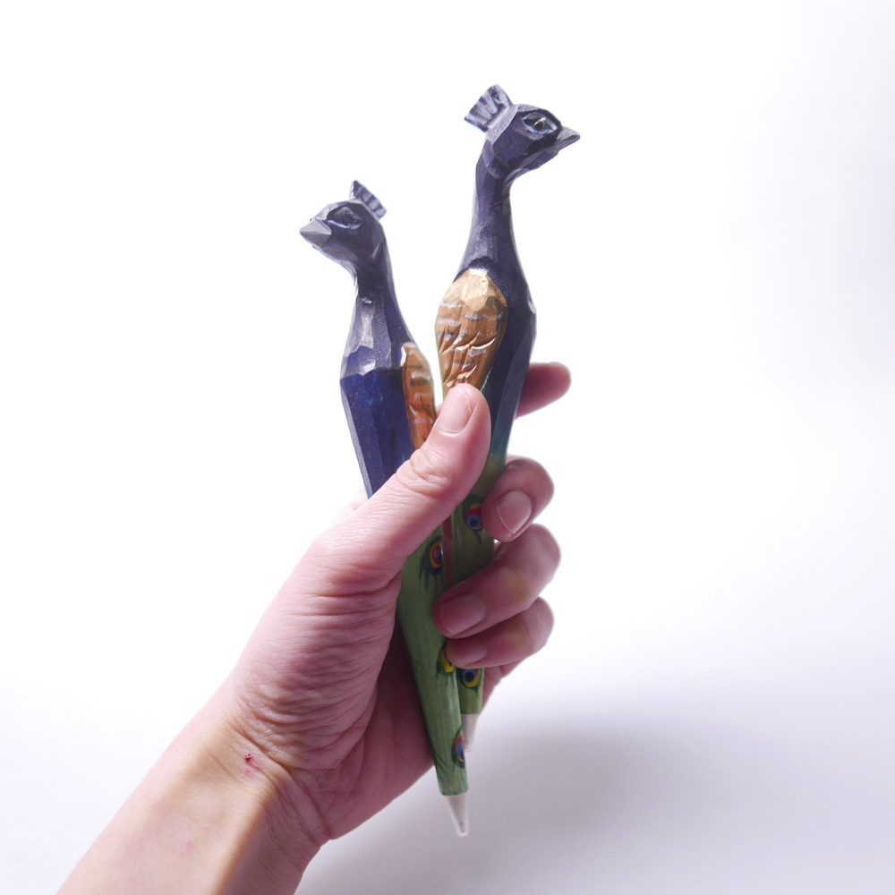 나무를 조각하고 페인팅해서 만든 볼펜입니다.