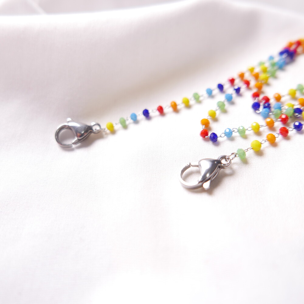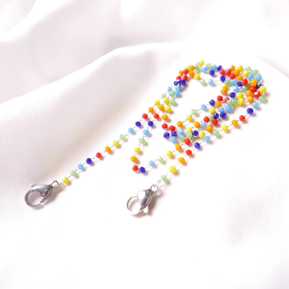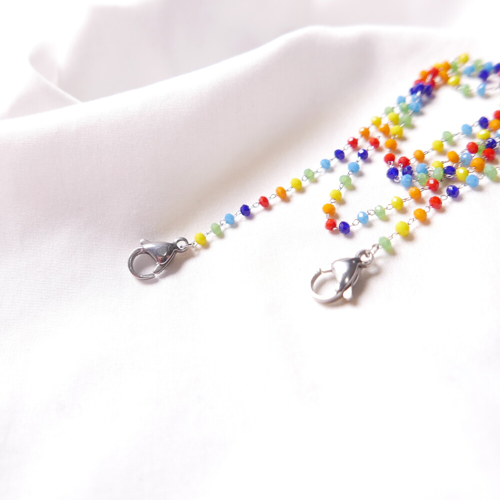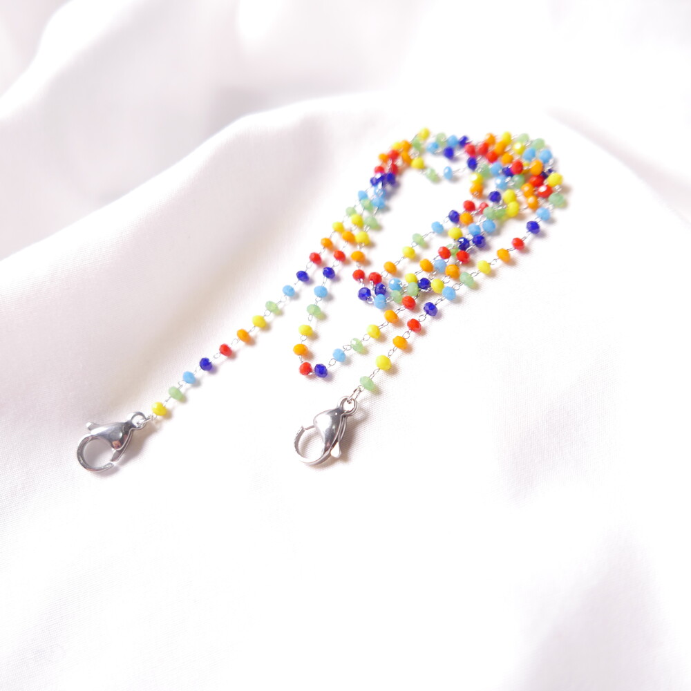 무지개컬러의 비즈 마스크 스트랩