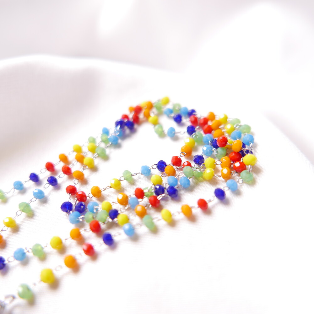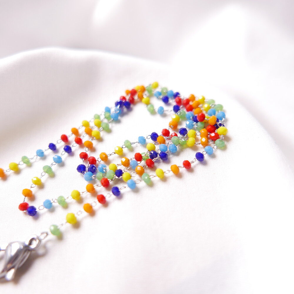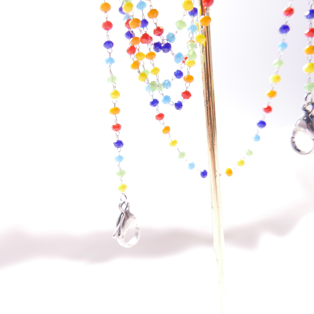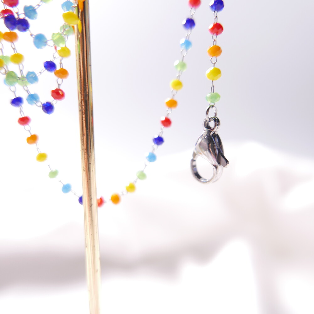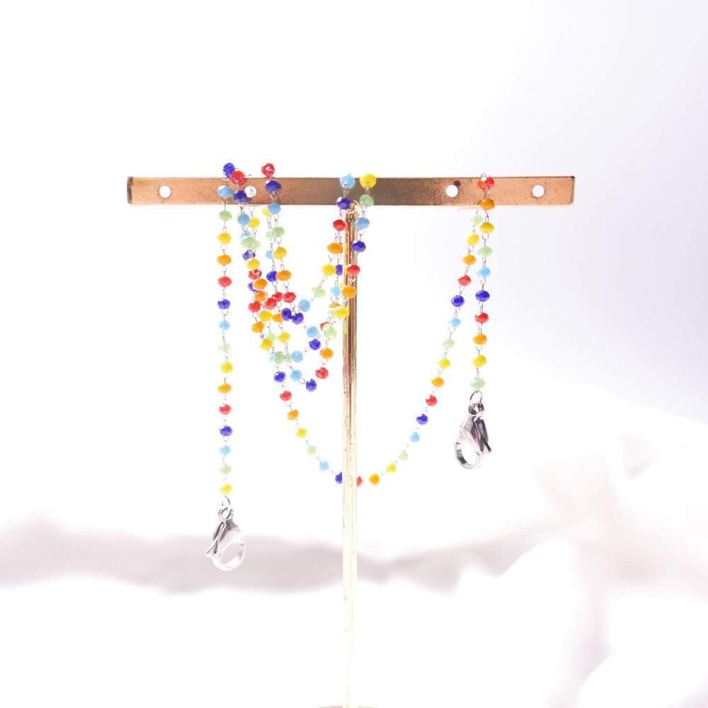 무지개컬러의 비즈 마스크 스트랩